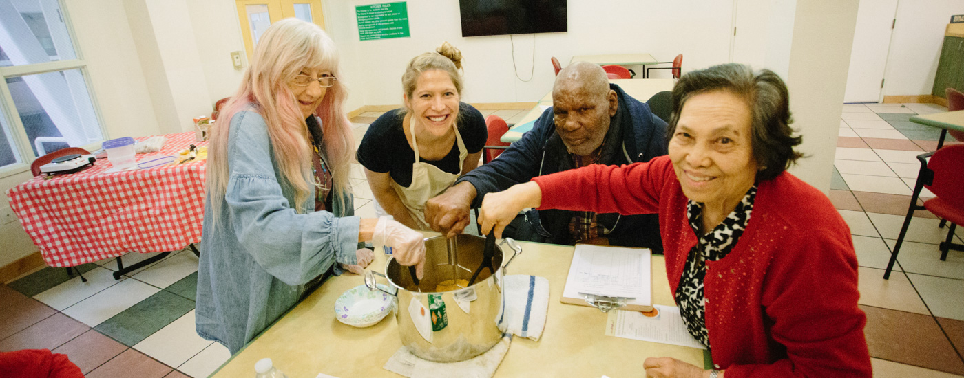 People like Kamurrah, a retired seamstress and artist living on a fixed income in San Francisco. She relies on our food pantry at Bayanihan House for much of her weekly groceries. She recently attended a Nutrition Education class at the pantry to learn how to cook some of the food she received recently. “I love the Food Bank,” Kamurrah says, “I have never eaten so well in my life. With the pantry, I try all kinds of fruits and veggies that I’ve never seen before. But I try it, and I’m always getting new foods that I like. There are vegetables that I didn’t even know how to eat, but I learned how because of the Food Bank.” The classes have expanded her horizons and have empowered her with the skills needed to cook and eat fresh foods she would not have known about or chosen otherwise.
