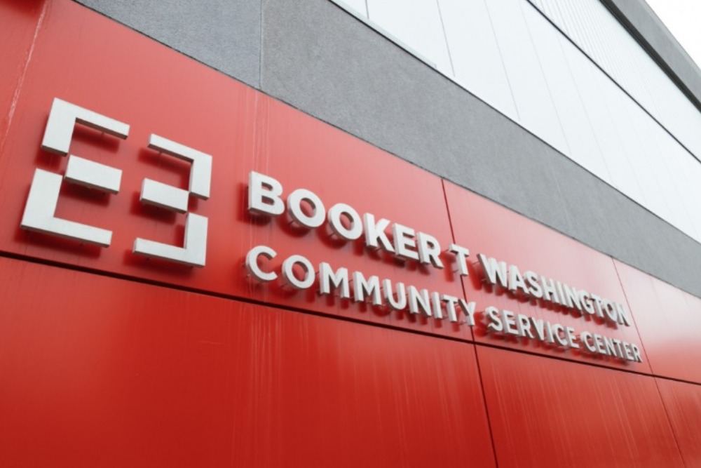 You notice Booker T. Washington Community Center as soon as you round the corner of Presidio Avenue near the Fillmore – amongst the classical Victorian architecture of San Francisco, Booker T. is a modern structure of sleek steel and glass. Its left side stands a little taller than its right to accommodate the community center’s fifty Affordable Housing Units, and a pop of cheerful poppy-red marks the entrance to the building.