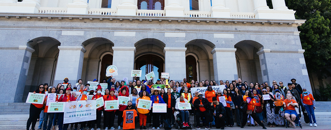 Associate Director of Policy and Advocacy Marchon, Community Organizer Alex, and Community Builder Jesus all traveled to Sacramento to represent the Food Bank. After an energetic pep rally outside of the Capitol, where we saw neighbors from partner organizations like Tenderloin Neighborhood Development Corporation (TNDC) representing their communities, advocates got down to business.