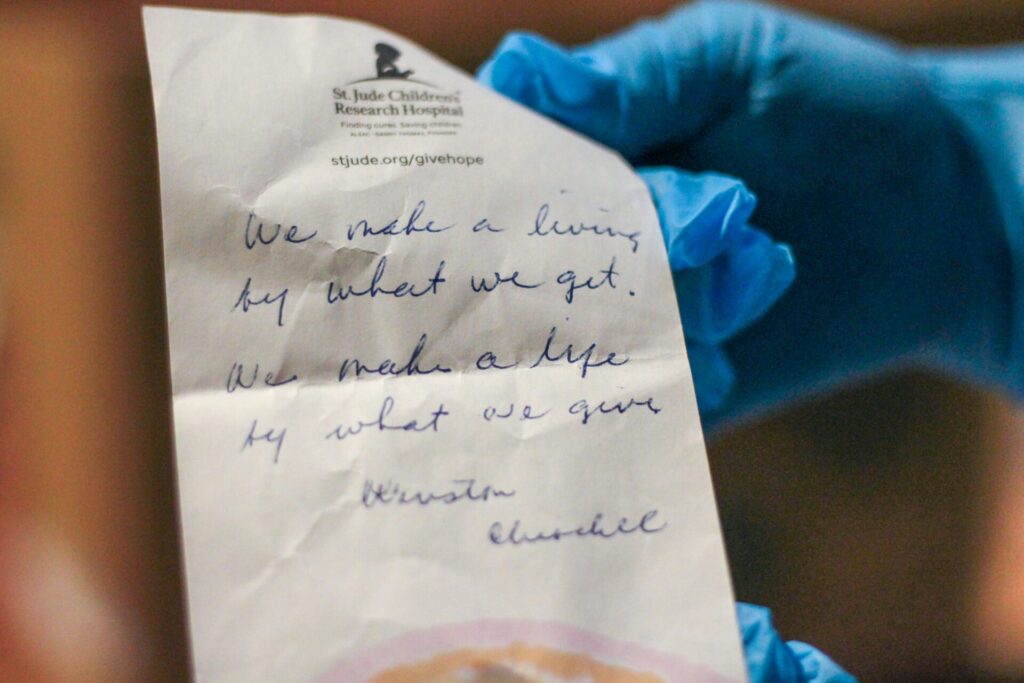 She keeps a folded piece of paper in her back pocket — a quote from Winston Churchill: